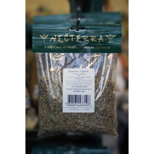O chá de Damiana é afrodisíaco, antisséptico, carminativo, estimulante e laxante. Diminui a frigidez feminina, evita a ansiedade no desempenho sexual. É indicado em casos de albuminúria, alcoolismo, anorexia, asma, bronquite, cistite, constipação, depressão, diabetes, diarreia, dispepsia, disenteria, dismenorreia, dor de cabeça, impotência sexual feminina e masculina, infecção intestinal, leucorreia, nervos, rinite, reumatismo, sífilis, úlceras pépticas, uretrite e problemas na vesícula.