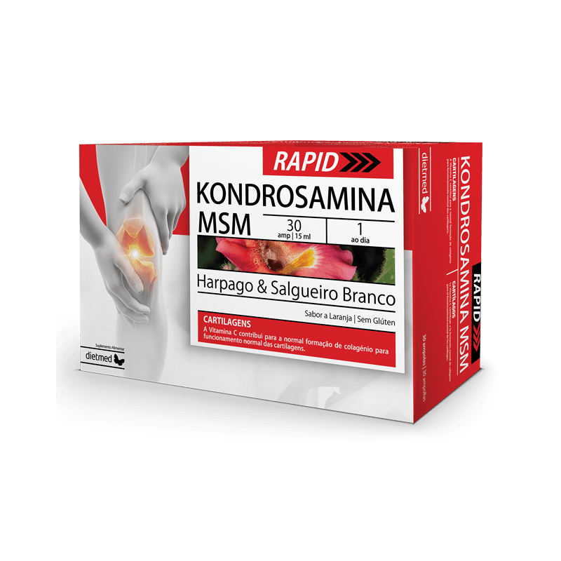 1 ampola: Sulfato de Glucosamina 750 mg, Sulfato de Condroitina 600 mg, MSM 375 mg, Extrato de Harpago 150 mg, Extrato de Salgueiro Branco 150 mg, Vitamina C 80 mg (100% VRN*). *
