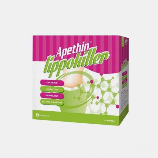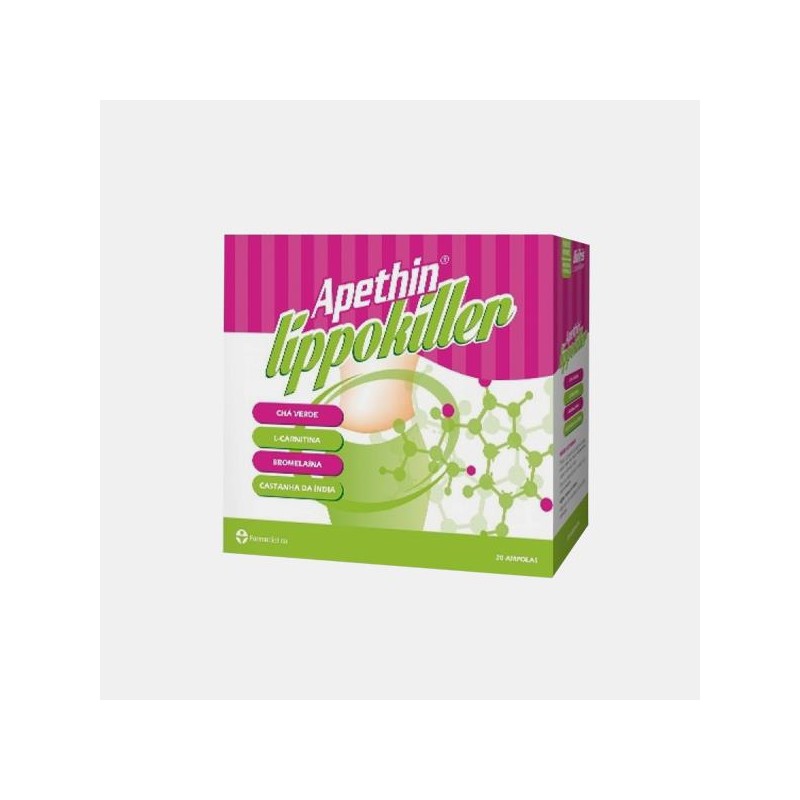 Apethin LippoKiller ampolas é um suplemento alimentar termogénico que contém na sua composição ingredientes tais como Chá Verde e L-Carnitina, que promovem a queima de gordura corporal.