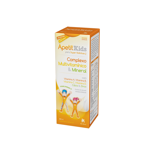 APETIT KIDS · SUPLEMENTO ALIMENTAR à base de vitaminas, minerais e aminoácidos. Contém edulcorantes. O seu consumo excessivo pode ter efeitos laxativos. Solução líquida 150 ml Atenção: Não exceder a dose diária indicada. Este produto não deve ser utilizado como substituto de um regime alimentar variado e equilibrado e de um modo de vida saudável. Este produto não é um medicamento. Importante: Manter fora do alcance e visão das crianças. Não aconselhável a grávidas e lactantes e a indivíduos com hipersensibilidade a algum dos componentes. Conservar em local seco e a temperatura inferior a 25ºC. Preservar da luz e do calor. Consumir de preferência antes do fim de: ver embalagem. Lote: ver embalagem.