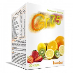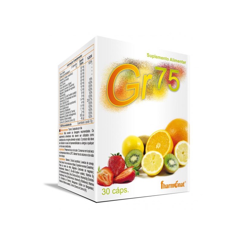 GR 75 é um suplemento alimentar rico em vitaminas utilizado em casos de carência alimentar, desnutrição, anorexia, como suplemento a desportistas idosos e adolescentes, possui propriedades diuréticas, estimulantes e energéticas, remineralizantes e drenadoras. É utilizado também em casos de dieta alimentar para ajudar á manutenção do peso pretendido.