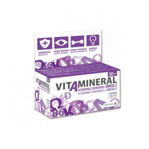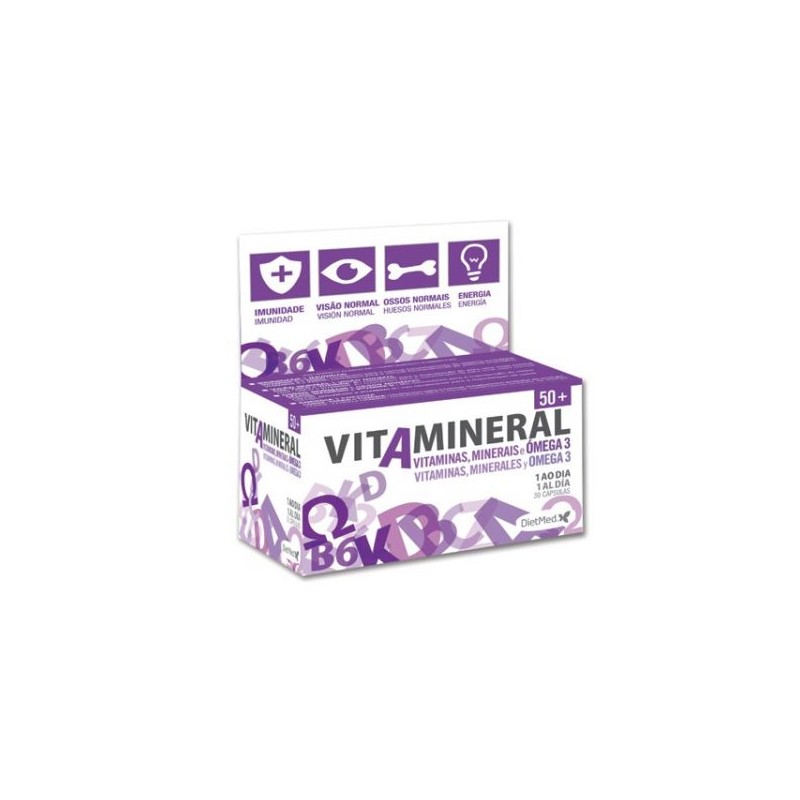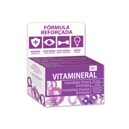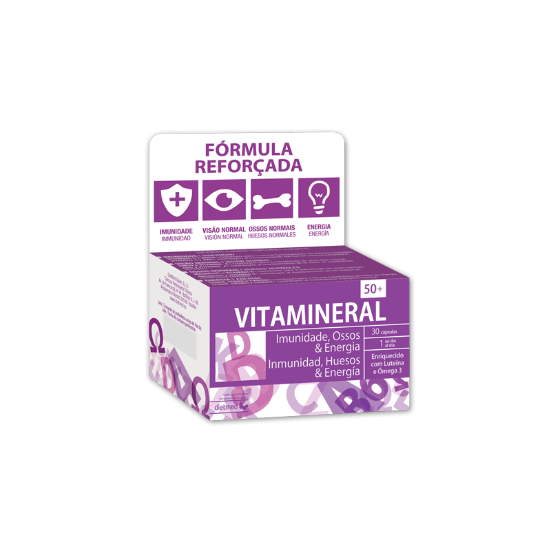 Vitamineral é uma fórmula pensada para pessoas com idade superior a 50 anos, para satisfazer as suas necessidades diárias de vitaminas e minerais de acordo com os regulamentos da União Europeia nesta matéria. Esta fórmula é enriquecida com ácidos gordos do tipo ómega 3 para atuar como um antioxidante, fortalecimento do sistema imunológico e promover o aumento da energia e pele saudável.