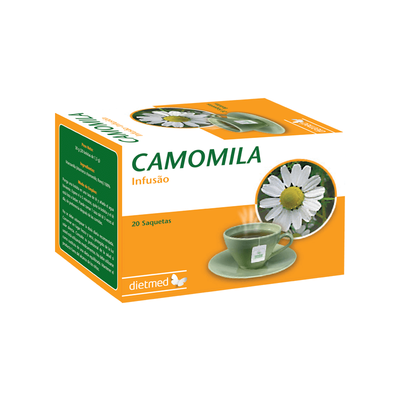 Chá de Camomila em Saquetas Chá de camomila é usado tradicionalmente para uma boa digestão e como calmante. APRESENTAÇÃO 20 Saquetas.