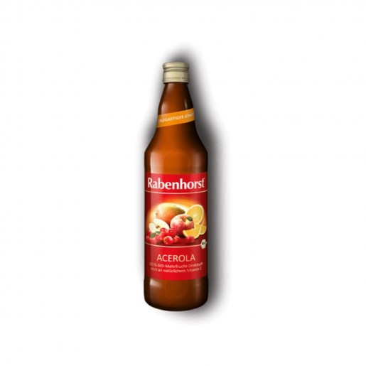 A Rabenhorst lançou esta mistura frutada e aromática de sumo puro misturado com quatro frutas harmoniosamente misturadas e produzidas durante um cultivo orgânico controlado. A Acerola tem um dos maiores teores de vitamina C, são cerca de 30 vezes mais do que a de um limão.