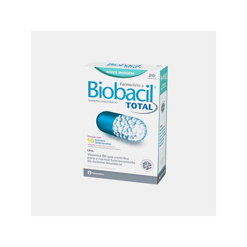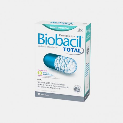 Biobacil® Total é um suplemento alimentar composto por 10 estirpes de probióticos que ajudam a melhorar a composição e propriedades da flora intestinal, a regular o trânsito intestinal, a reforçar o sistema imunitário, ajudando a prevenir a infecção por agentes patogénicos, e conferindo ainda outros benefícios de saúde.