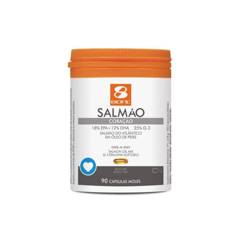 Biofil óleo de salmão 1000 é um suplemento alimentar natural que contém 2 g de óleo de Salmão selvagem do Atlântico Norte. É obtido a partir da carne de exemplares selvagens, capturados de forma sustentável nas águas límpidas e geladas do Atlântico Norte, esterilizado em recipientes fechados, prensado a frio, desodorizado e finalmente filtrado.