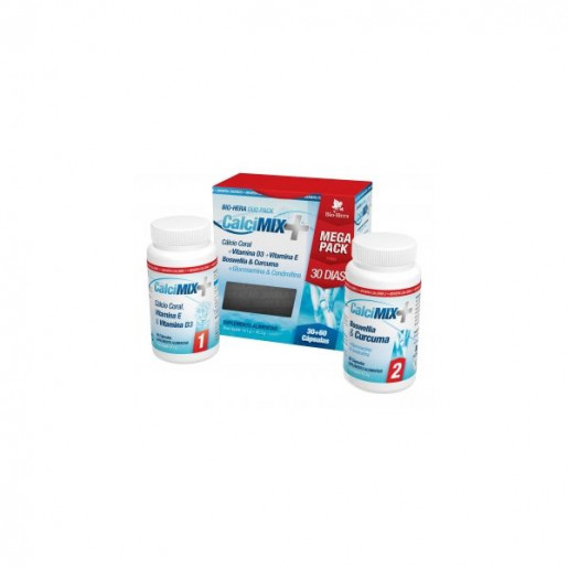 CalciMix+ 2: Curcuma (Curcuma longa) raiz ext. sexo (26,49%); Agente de Carga: Maltodextrina; Unha de Gato (Uncaria tomentosa) casca ext. seco (6,62%); Sulfato de Glucosamina (6,62%); Sulfato de Condroitina 6,62%); Boswellia (Boswellia serrata) resina ext. seco (5,29%); Gluconato de Zinco (4,90%); Salgueiro (Salix alba) casca ext. seco (2,65%); Sabugueiro (Sambucus nigra) casca pó (2,65%); Hárpago (Harpagophytum procumbens) raiz pó (2,65%); Anti aglomerantes: Estearato de Magnésio e Dióxido de Silício; Vitamina C (Ácido L-ascórbico) (1,98%); Selenito de Sódio (0,00003%).