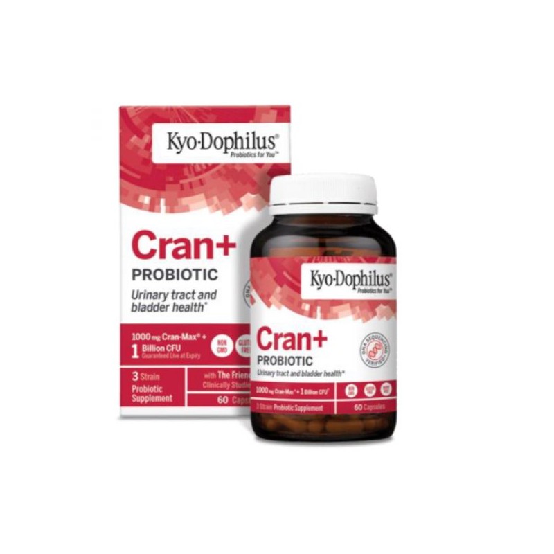 Kyo-Dophilus® Cran + Probiotics é uma fórmula que combina mil milhões de células vivas de 3 estirpes de Probióticos altamente biocompatíveis Lactobacillus gasseri KS-13,Bifidobacterium bifidum G9-1 and Bifidobacterium longum MM-2 (The Friendly Trio®) com 1 g Cran-Max®, extrato de Arando vermelho patenteado altamente concentrado (34: 1). Esta combinação foi estabelecida de forma a promover a saúde do trato urinário, através da melhoria da flora intestinal.
