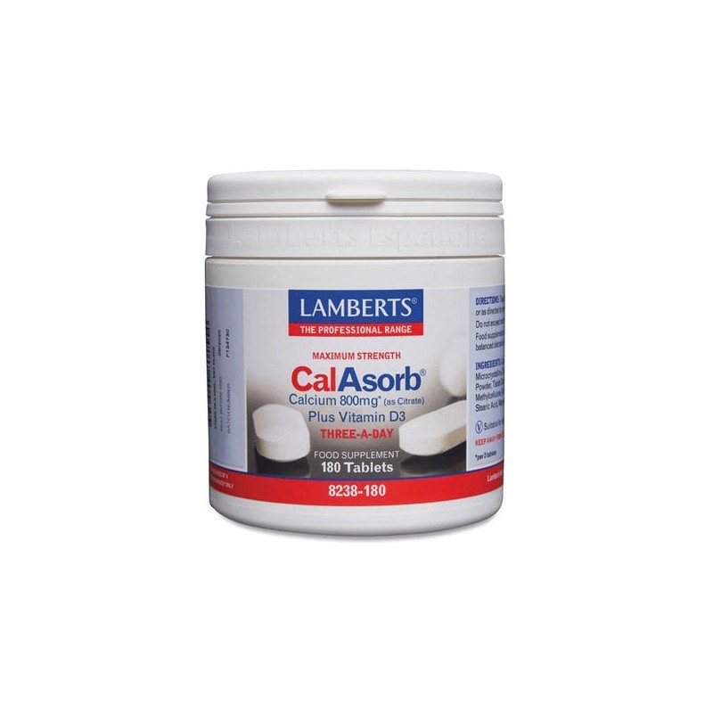 O CalAsorb Lamberts Calcium Citrate fornece cálcio na forma de citrato, considerado um dos compostos de cálcio mais facilmente absorvíveis, devido em parte à sua alta solubilidade em comparação com outros compostos de cálcio.