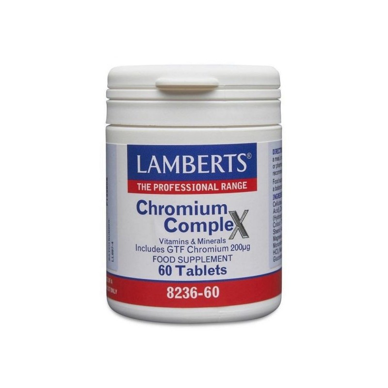 Crómio está envolvido nos processos bioquímicos de açúcar no sangue, pois ajuda o corpo a usar a insulina. O Chromium Complex da Lamberts é uma combinação de nutrientes que contribuem para o efeito de crómio como um regulador dos níveis de glicose no sangue.