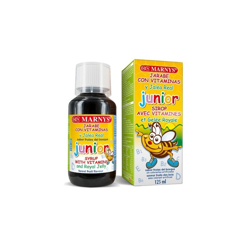 Marnys Junior Syrup é um xarope multivitamínico com geleia real, 12 vitaminas e um agradável sabor a frutos silvestres, que complementa a dieta alimentar principalmente de crianças e adolescentes em fase de crescimento
