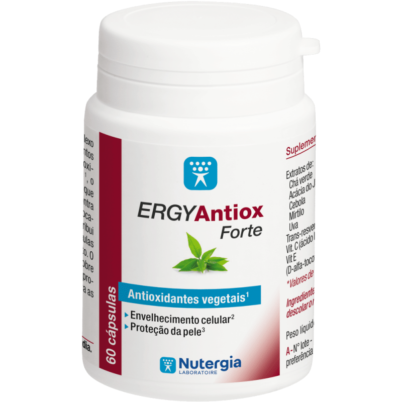 ErgyAntiox Forte é um complexo de vitaminas, oligoelementos e plantas ricos em antioxidantes como a Cebola, o Mirtilo e o Chá Verde que ajuda a proteger a pele contra os danos oxidativos provocados pelos raios UV.