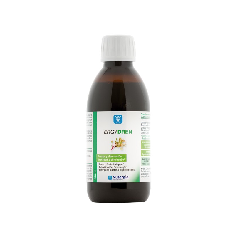 ERGYDREN é uma associação de plantas reconhecidas para estimular as funções de eliminação renal e/ou hepática, ajudando na drenagem do organismo (raínha-dos-prados, groselheira negra) e facilitando a perda de peso (alcachofra). Os oligoelementos provenientes de água marinha e argilosa completam a fórmula.