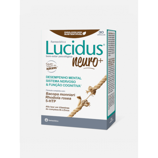 Lucidus Neuro, da Farmodiética é uma fórmula que contém nutrientes e plantas fundamentais para potenciar a performance cerebral como a Bacopa moniera, aminoácidos, minerais e vitaminas do complexo B.